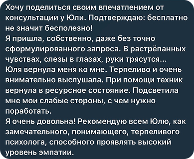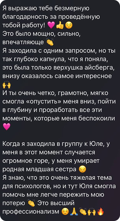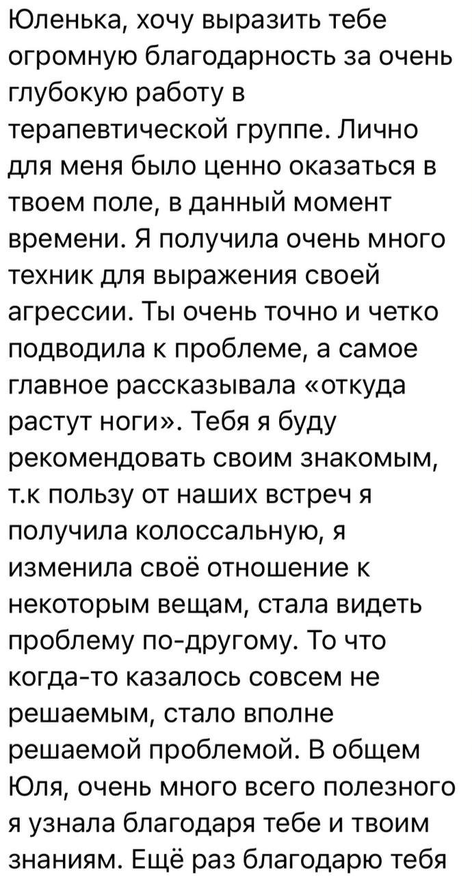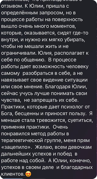 Благодаря Юлии, сейчас учусь лучше понимать свои чувства, не запрещать их себе