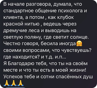 …ты очень аккуратно, но при этом точно определяла причину того или иного беспокойства, подводила меня к сути…